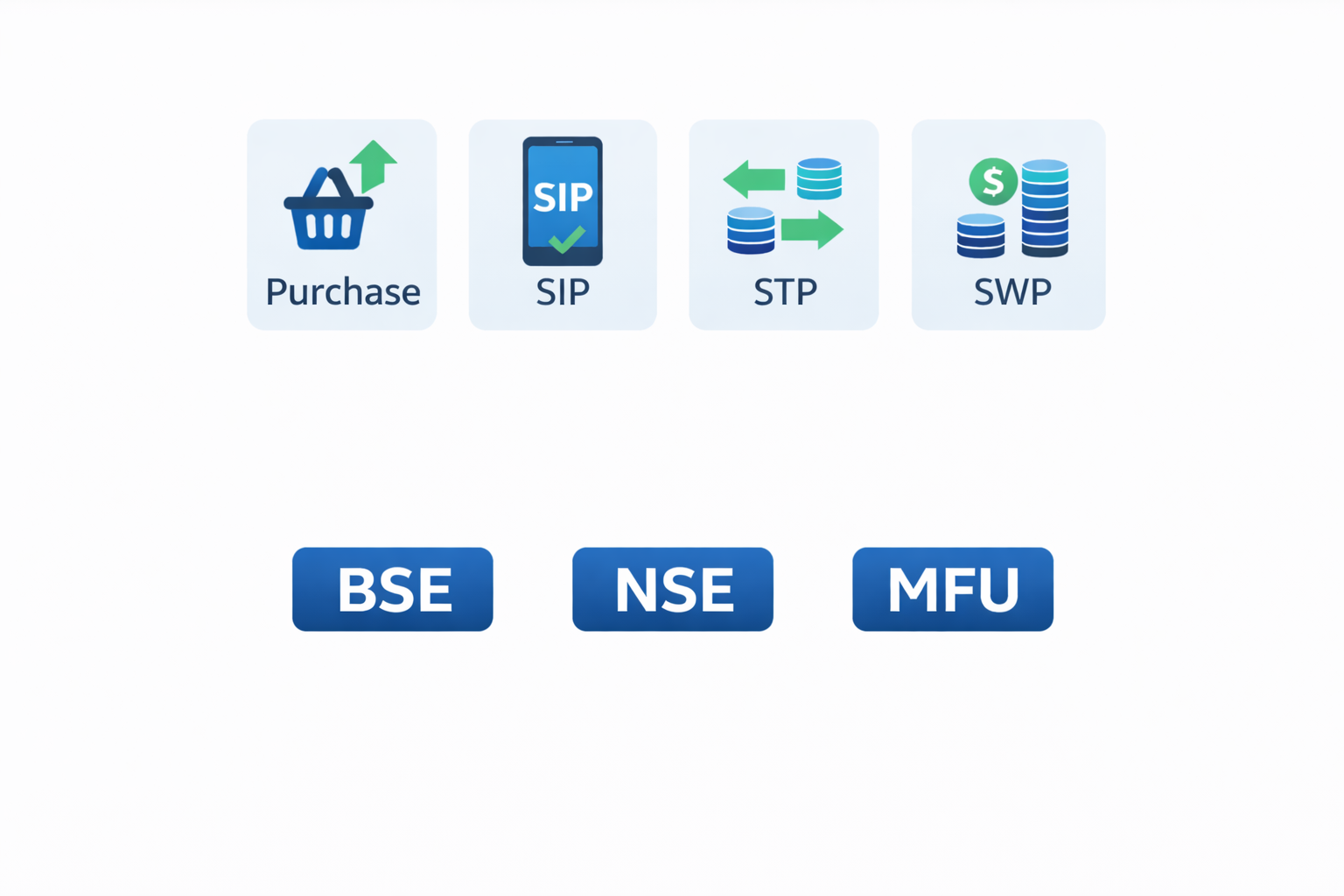 When your wealth management software supports both BSE and NSE integrations along with MFU, you gain: