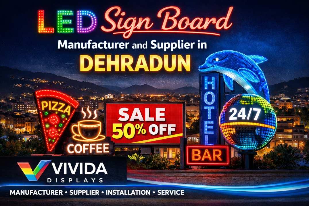 If you are searching for a dependable led sign board manufacturer and supplier in Dehradun, Vivida Displays is your ideal partner. With innovative designs, high-quality materials, professional installation, and dedicated support, we help your business stand out in the competitive Dehradun market.