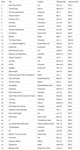 The data from VSDA and VidTrac provides valuable insights into the top rental titles for the mid-year of 2002. Analyzing the trends reveals which movies and video titles captured the most attention during this period. Consumer preferences leaned toward genres that offered both entertainment and value, shaping rental patterns across various demographics. Understanding these popular titles helps industry professionals identify key drivers of rental success and anticipate future market movements. Overall, the mid-year report underscores the importance of strategic content selection in maximizing rental performance and customer satisfaction.