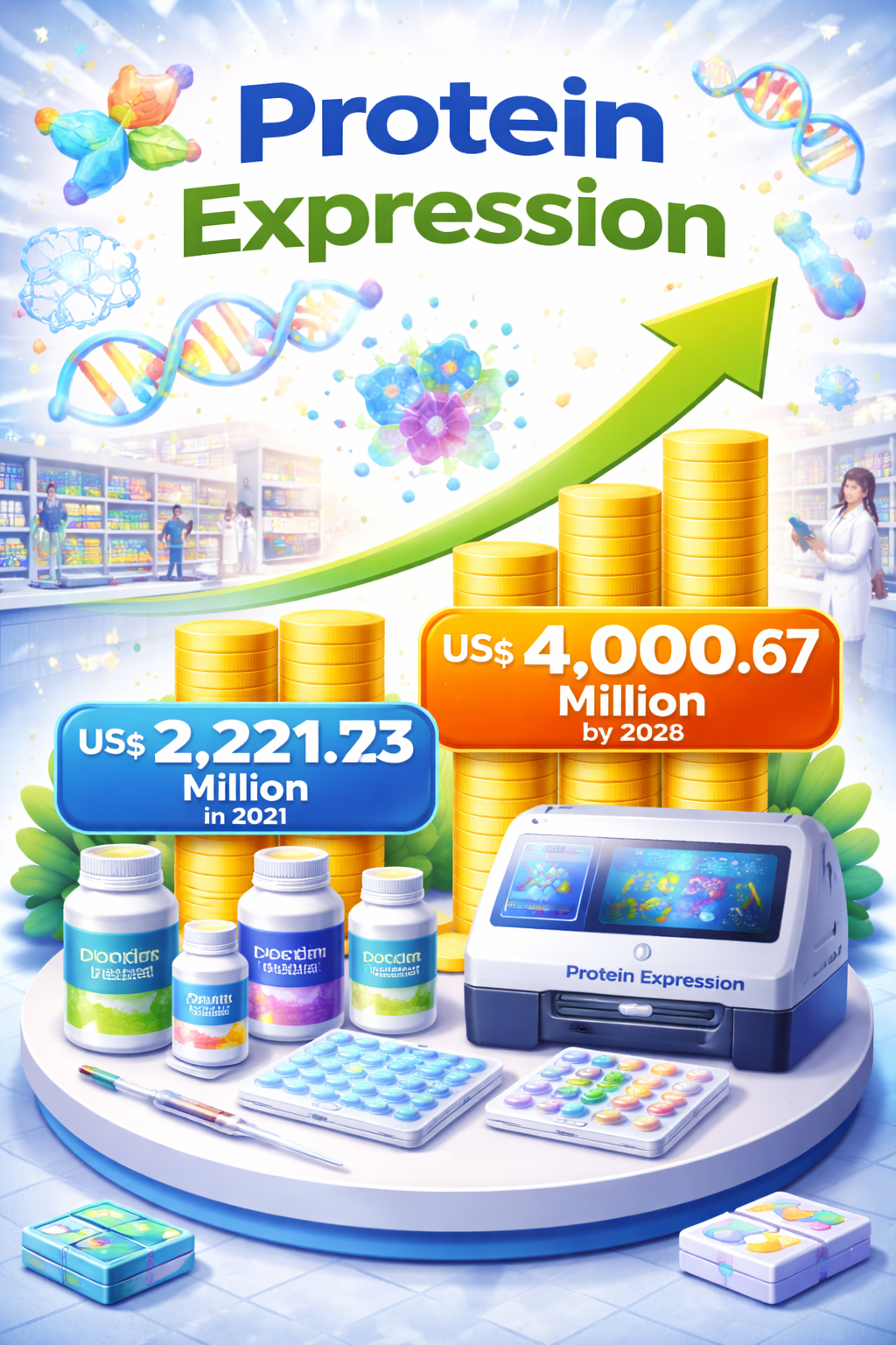 Industry reports indicate that the protein expression market was valued at around US$ 2,221.73 million in 2021 and is expected to reach approximately US$ 4,000.67 million in 2028, reflecting strong growth driven by expanding biotechnology research and pharmaceutical development.