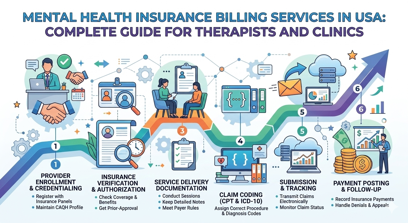 Mental health practices across the United States are experiencing rapid growth as awareness and demand for behavioral healthcare increase. While this expansion creates more opportunities for therapists, psychologists, and psychiatrists, it also introduces complex administrative challenges. One of the most demanding areas is billing and insurance management. Mental health providers often struggle with coding requirements, claim submissions, insurance verification, and reimbursement delays.
