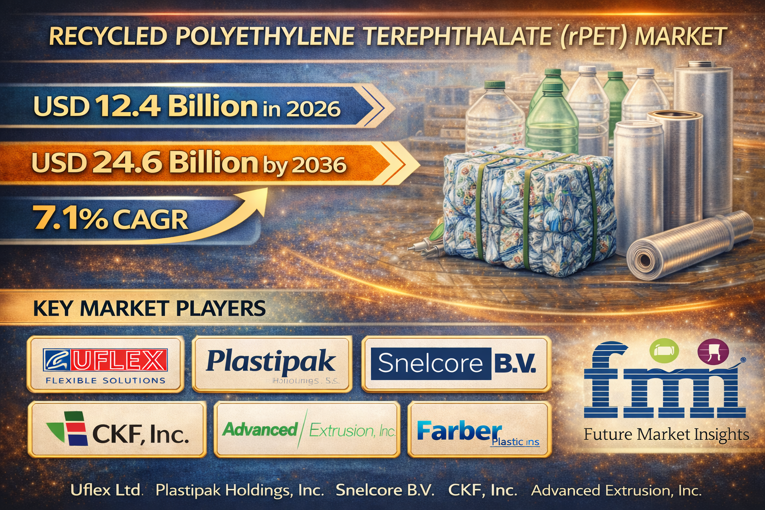 The global recycled polyethylene terephthalate (rPET) market is projected to grow from USD 12.4 billion in 2026 to USD 24.6 billion by 2036, expanding at a 7.1% CAGR. Market growth is being driven primarily by binding recycled-content mandates rather than voluntary sustainability pledges. The European Parliament confirmed the Packaging and Packaging Waste Regulation (PPWR), establishing mandatory recycled-content thresholds for PET beverage bottles 25% by 2025 and 30% by 2030. These regulations are forcing brand owners to secure long-term rPET supply contracts, creating a sustained structural premium for food-grade recycled resin. Industrial-scale recycling investments are accelerating worldwide. Indorama Ventures has processed over 150 billion PET bottles since 2011 across global facilities, while ALPLA invested EUR 60 million in South Africa’s first major PET recycling facility. The market is transitioning from pilot operations to continent-scale infrastructure deployment.