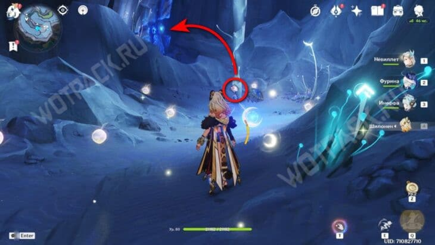 Westlich vom Oathkeeper’s Sanctum, nahe einer Klippe, befindet sich ein Gebiet, wo man sowohl einen Hilichurl als auch einen Hydro-Slime antreffen kann.