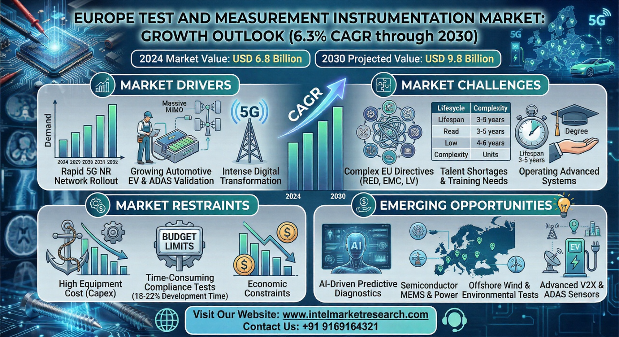 Europe Test and Measurement Instrumentation Market Growth Outlook Showing 6.3% CAGR Through 2030