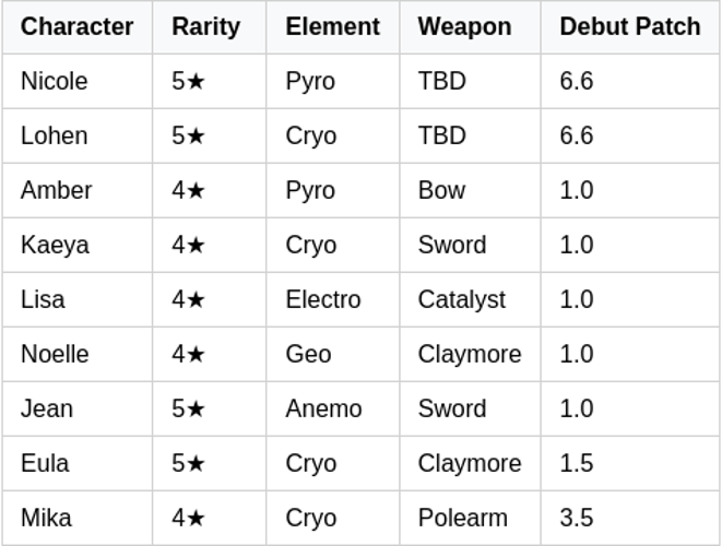 • Versatile supports: Jean and Lisa might find renewed purpose in Varka teams or pyro-centric lineups anchored by Nicole.