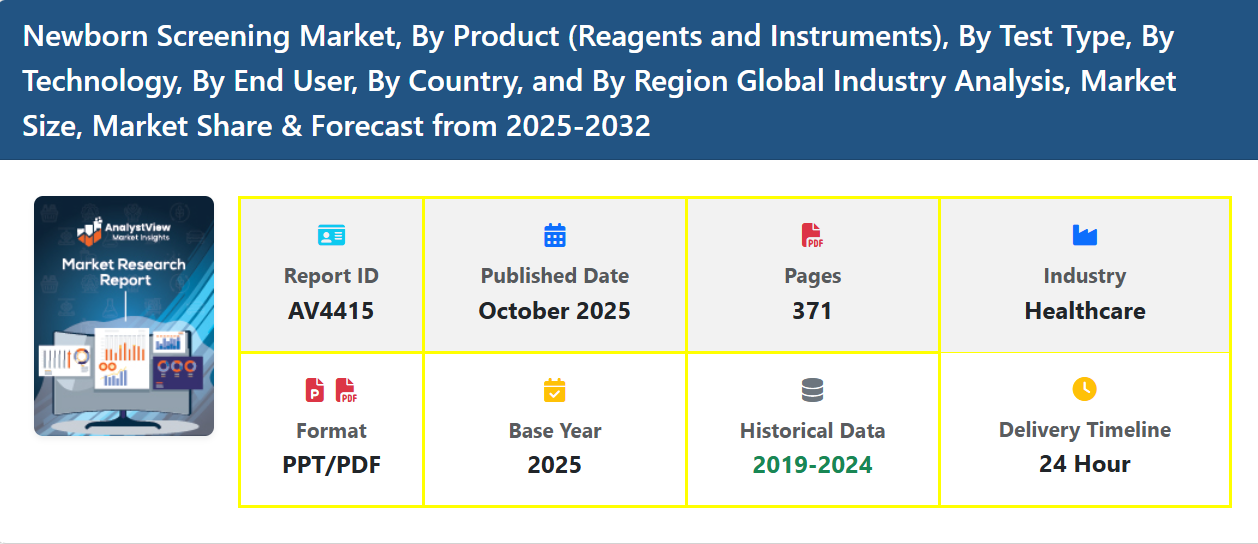 The Newborn Screening Market is witnessing steady and consistent growth as healthcare systems worldwide prioritize early diagnosis of congenital and metabolic disorders in infants. Newborn screening plays a critical role in preventive healthcare, enabling clinicians to detect conditions such as phenylketonuria (PKU), congenital hypothyroidism, cystic fibrosis, and various hemoglobinopathies within days of birth. Early identification allows timely treatment, reducing the risk of lifelong health complications and improving long-term outcomes.