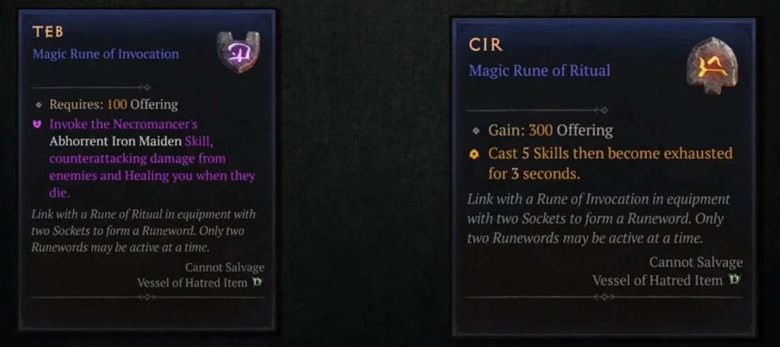 • Indira’s Memory (pants): Blood Wave triggers a Bone Prison on enemies hit; Bone Spear becomes a blood skill and, after hitting, consumes a nearby corpse to launch an additional Bone Spear while draining 10% maximum life per cast.