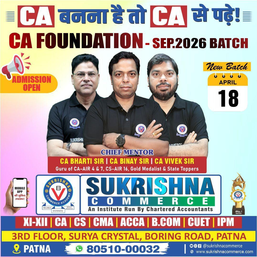 If you are searching for the best accounts and economics coaching in Patna or specialized CA foundation coaching in Patna, Sukrishna Commerce Academy is a strong choice. With CA-led mentorship and a student-focused approach, it helps students build successful careers in commerce.