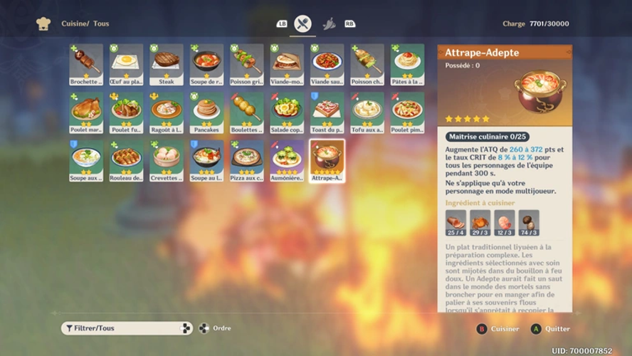 Recette 5 étoiles Genshin - L'attrape adepte