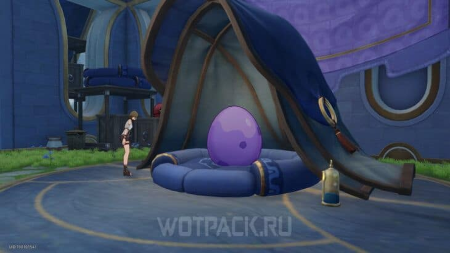Dort werden Sie ein auffälliges, riesiges lila Ei entdecken.