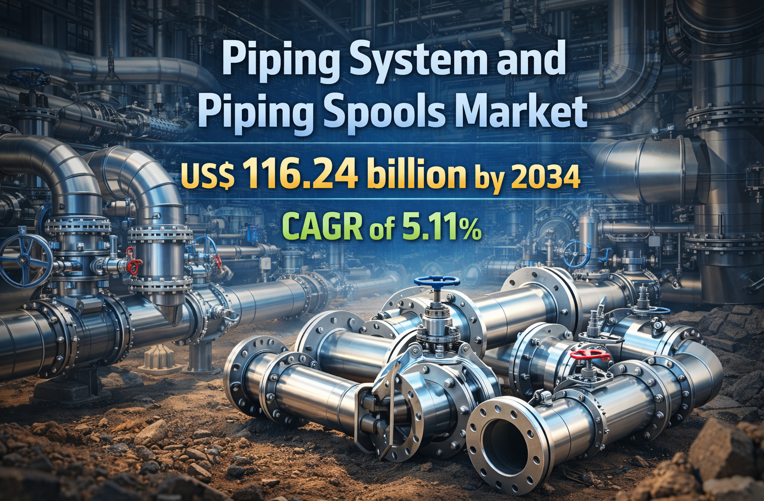 The Piping System and Piping Spools Market is projected to reach US$ 116.24 billion by 2034 from US$ 74.26 billion in 2025. The market is anticipated to register a CAGR of 5.11% during the forecast period 2026-2034. This growth trajectory reflects the critical nature of these systems in maintaining the operational integrity of large scale processing facilities worldwide.