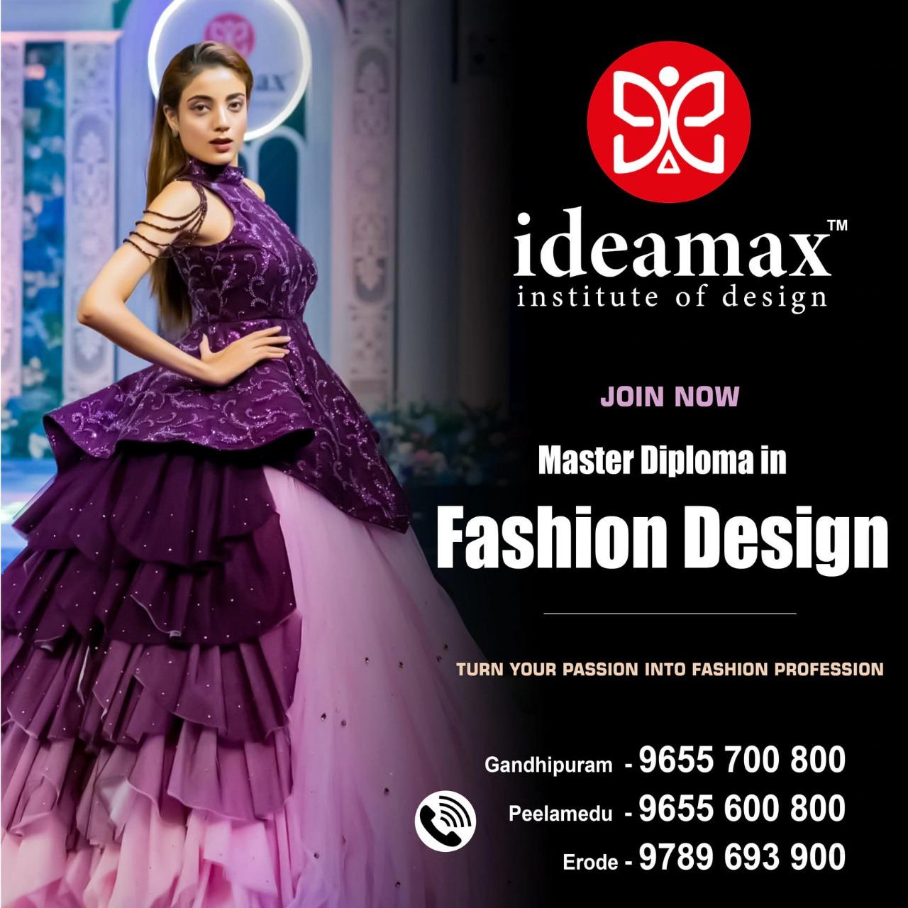 Admissions for the Diploma in Fashion and Design at IDEAMAX Institute of Design are now open at our Coimbatore, Gandhipuram, and Erode campuses. Students passionate about fashion, creativity, and innovation are welcome to join one of the most prestigious fashion design programs in South India.