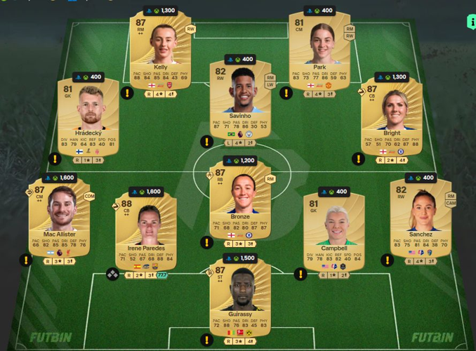 • La note globale de l'effectif doit être d'au minimum 86.