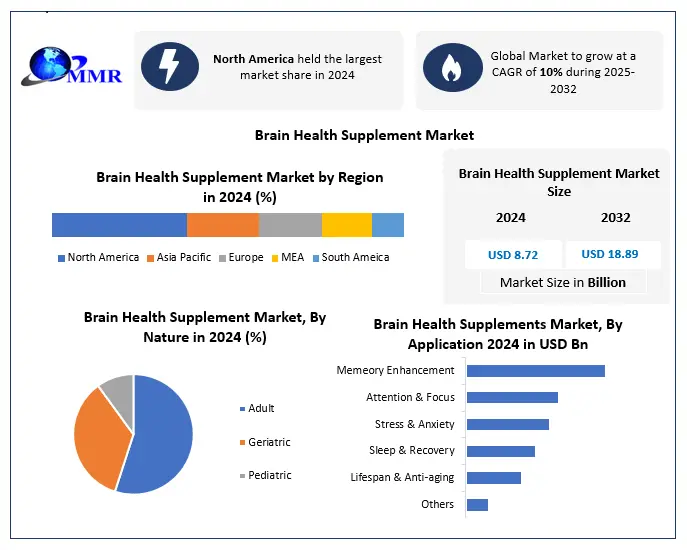 The Global Brain Health Supplement Market is experiencing significant growth as consumers increasingly prioritize cognitive wellness, mental performance, and preventive healthcare solutions. According to market estimates, the industry is projected to grow at a strong CAGR throughout the forecast period, reaching substantial valuation by the end of the decade. Brain health supplements—including vitamins, herbal extracts, omega-3 fatty acids, nootropics, and memory support formulations—are gaining widespread adoption due to growing concerns around aging populations, mental fatigue, stress management, and neurodegenerative disease prevention.