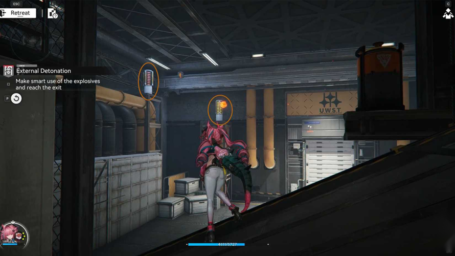 Alternatively, a volatile explosive barrel is positioned nearby, offering a tactical option for remote triggering.