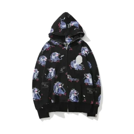 The most recognizable BAPE hoodie features the brand’s iconic shark design. The full-zip version, complete with the embroidered shark mouth along the hood and eyes at the top, transforms the wearer into a walking work of art. This attention to detail, combined with the oversized silhouette, creates an aggressive yet playful aesthetic that has defined streetwear for decades. It’s not just a hoodie—it’s an emblem of bold self-expression, instantly recognizable in urban environments, music videos, and global fashion campaigns.