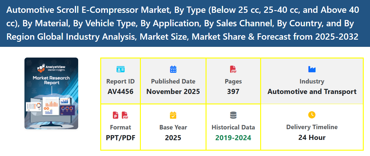 ● Detailed Market Understanding: Gain insights into key drivers, restraints, trends, and growth opportunities shaping the automotive scroll E-compressor market.