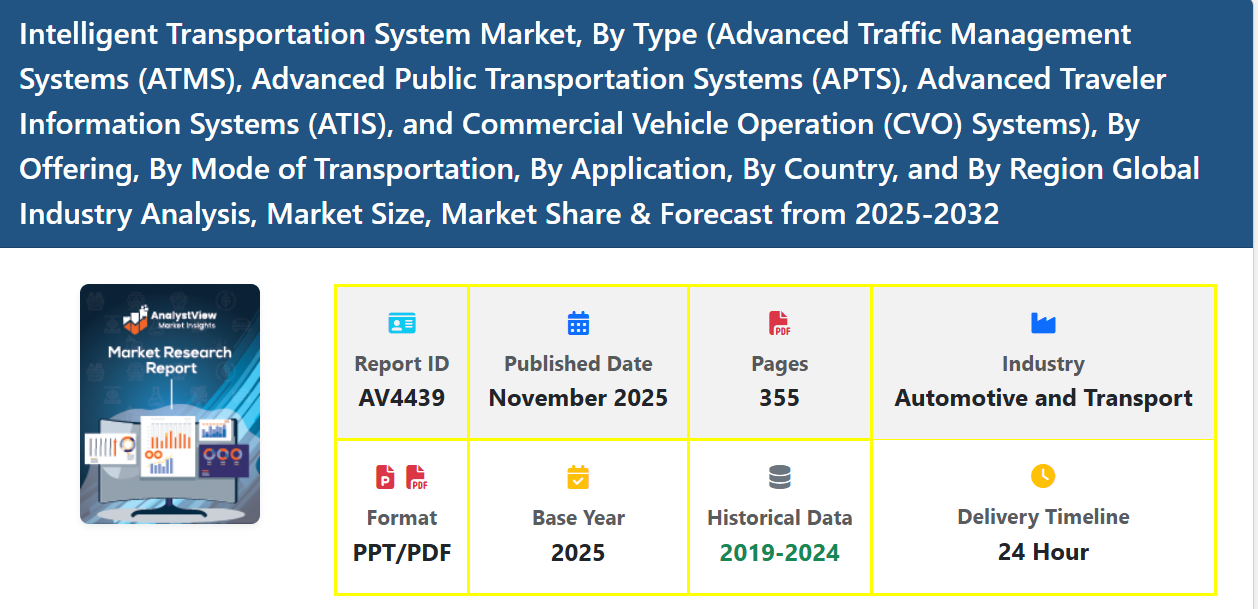 The Intelligent Transportation System (ITS) Market is witnessing strong global expansion driven by the rising need for efficient mobility, enhanced traffic management, and improved road safety. ITS integrates advanced communication technologies, data analytics, sensors, and automation to optimize the movement of vehicles, people, and goods. It bridges physical transportation infrastructure with digital intelligence, enabling real-time monitoring, congestion reduction, predictive traffic control, and faster emergency response.
