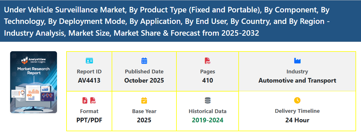 The Under Vehicle Surveillance System (UVSS) Market is growing steadily as global security demands intensify across critical sectors such as government facilities, defense establishments, transportation hubs, commercial complexes, and high-security industrial sites. UVSS solutions are designed to automatically scan, capture, and analyze the underside of vehicles to detect concealed threats, including explosives, contraband, and mechanical anomalies. As global security challenges rise, organizations are adopting automated surveillance systems to enhance perimeter protection and minimize the limitations of manual inspections.