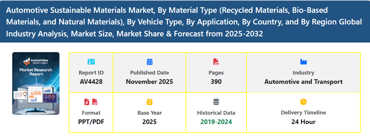 The Automotive Sustainable Materials Market is expanding rapidly as global automakers prioritize greener supply chains, eco-friendly manufacturing, and reduced vehicle carbon footprints. Sustainable materials—such as bio-based plastics, recycled metals, natural fiber composites, eco-friendly coatings, and lightweight alloys—are increasingly replacing traditional automotive materials. These materials help manufacturers meet stricter emissions regulations, achieve weight reduction goals, and address rising consumer demand for environmentally responsible vehicles.