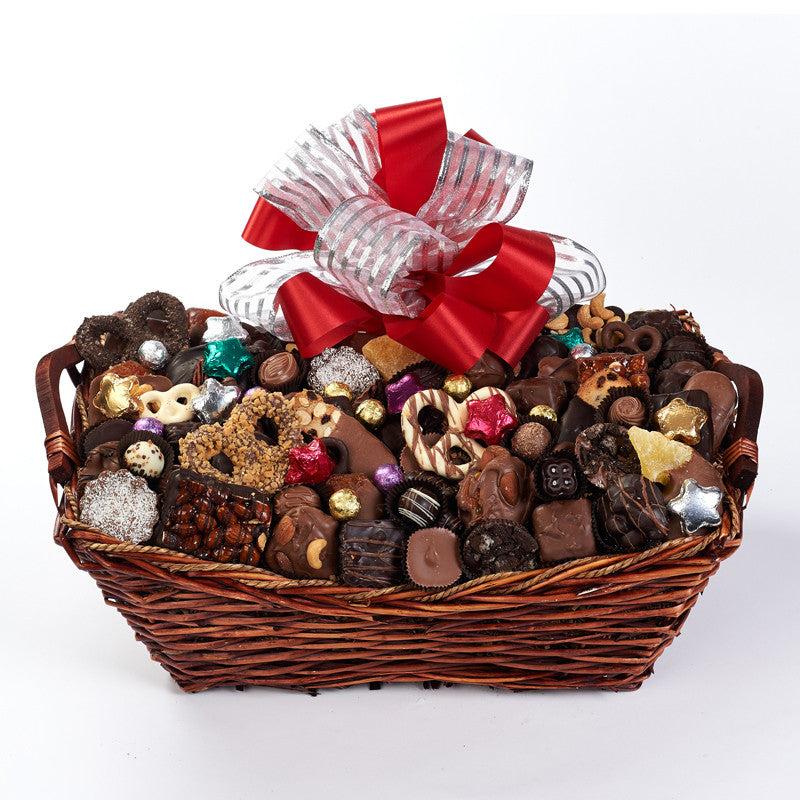 chocolate gift baskets this generous become the centerpiece of holiday photos and the reason cousins fight over the last truffle.