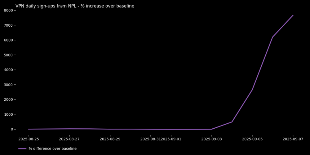 saw registrations for one VPN service surge by 1,300% in a single day.