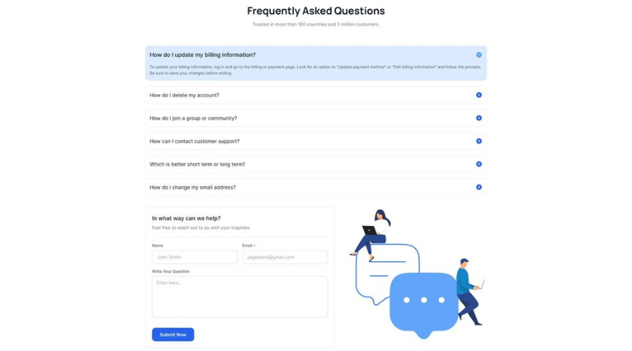 People often pause when they see a price and try to decide if it is worth it. A good FAQ can explain what is included, how billing works, and what the customer gets at each step.