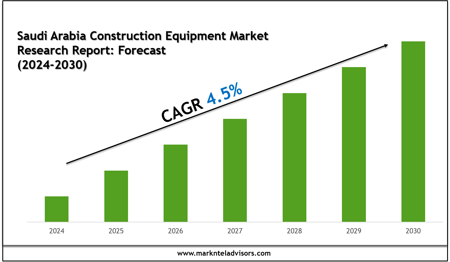 The Saudi Arabia Construction Equipment Market is estimated to grow at a CAGR of around 4.5% during the forecast period, i.e., 2024-30. The market is propelled by the dynamic growth in the infrastructural development & tourism sectors throughout the region.