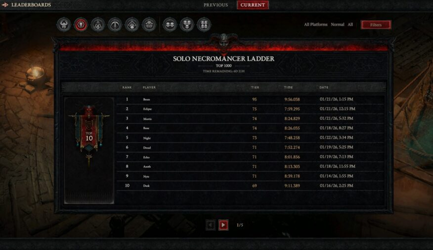 Throughout the season, leaderboards are organized into multiple two-week cycles, culminating just before the Season of Divine Intervention concludes. For example, the first cycle begins on January 12 at 11:00 a.m. PST and ends on January 26 at 11:00 a.m. PST. The subsequent cycle runs from January 26 to February 9 at the same time, with additional rounds following this pattern.