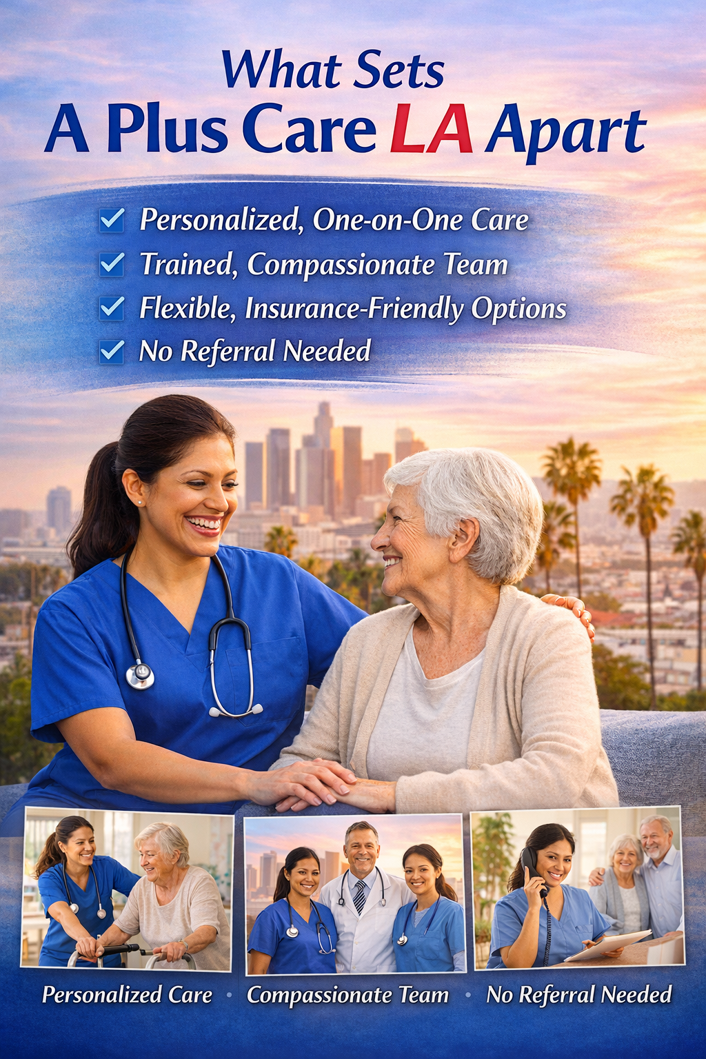A Plus Care LA is a licensed home health care agency in Los Angeles offering personalized, compassionate in-home medical and therapy services. Their team of licensed professionals provides a range of support—including physical therapy, occupational therapy, speech therapy, nursing, and daily living assistance—delivered right in the comfort of your home. With flexible scheduling, tailored care plans, and acceptance of Medicare and most insurance, A Plus Care LA helps individuals recover, maintain independence, and improve quality of life with trusted, professional support.