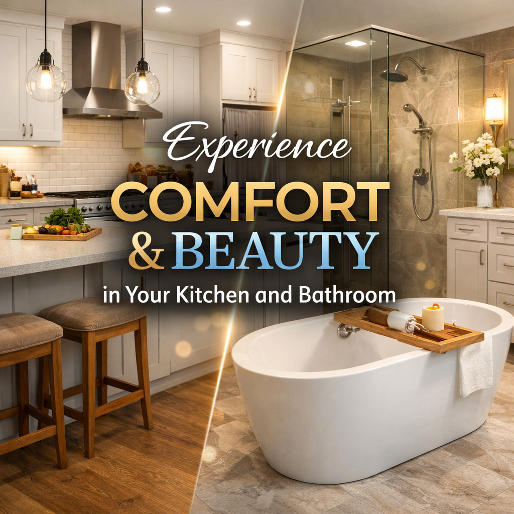 Experience comfort & beauty in your kitchen and bathroom with modern renovations that enhance style, function, and long-term home value.